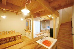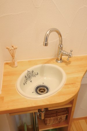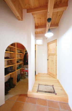 “手づくり”感あふれる住まい 洗面台・キッチン・玄関ドアなどオリジナルで造作 “手づくり”がたくさん詰まったおうちです 肌ざわりのいい木の質感や塗り壁の優しさを重視し 自然素材をふんだんに使いました ギャラリー