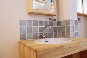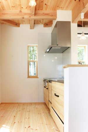 塗り壁やパインの無垢材など自然素材の心地よさ