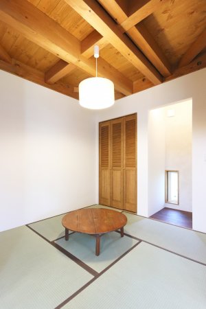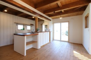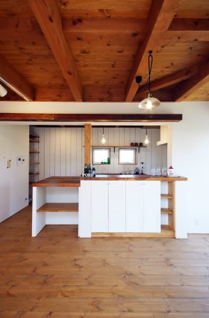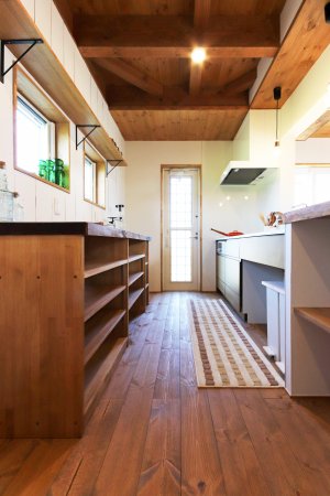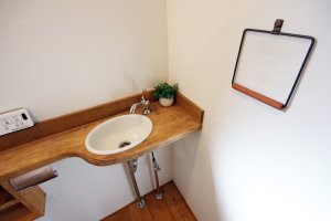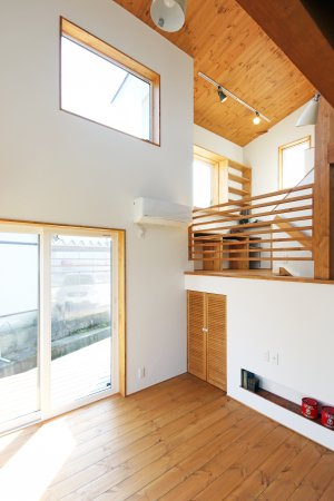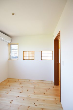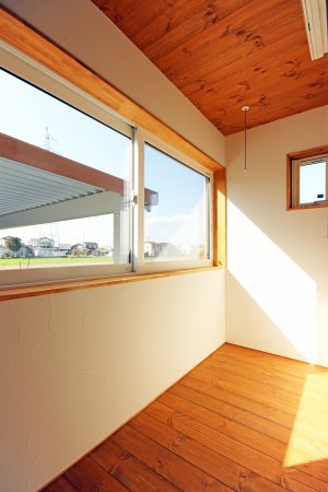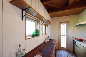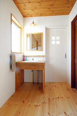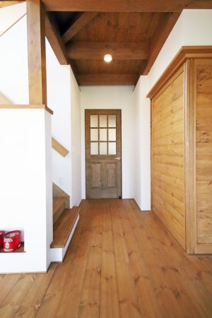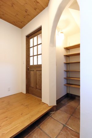 まあるいRの下がり壁やガラスの付いたかわいいドア