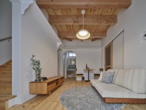 屋内は塗り壁と無垢材の自然素材を採用したナチュラルな風合いです。