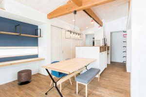 塗り壁やパインの無垢材を使った 自然素材のぬくもりあふれる