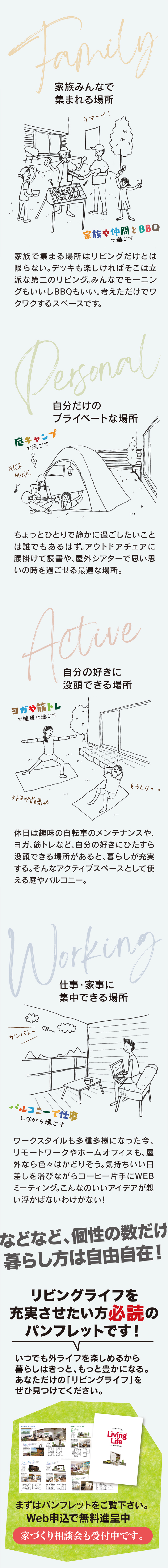暮らし方の可能性が広がる家【リビングライフ】が誕生。自分らしい家づくりをお考えの方にパンフレットを差し上げます。まずはお気軽にお問い合わせ下さい。