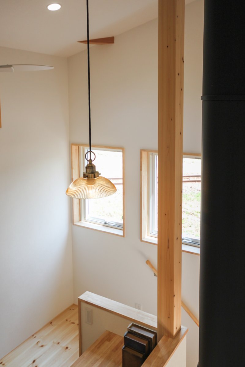 吹き抜けを通して、燃える木の香りと暖かさが
