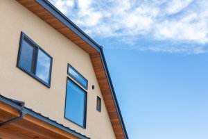 外壁・軒天部分に板張りを組み合わせた