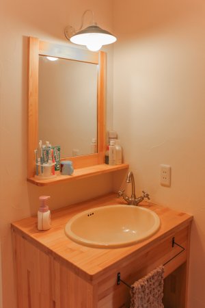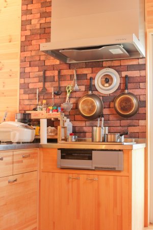 側面の壁がレンガタイル仕上げのオーダーメイドキッチンは