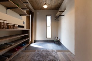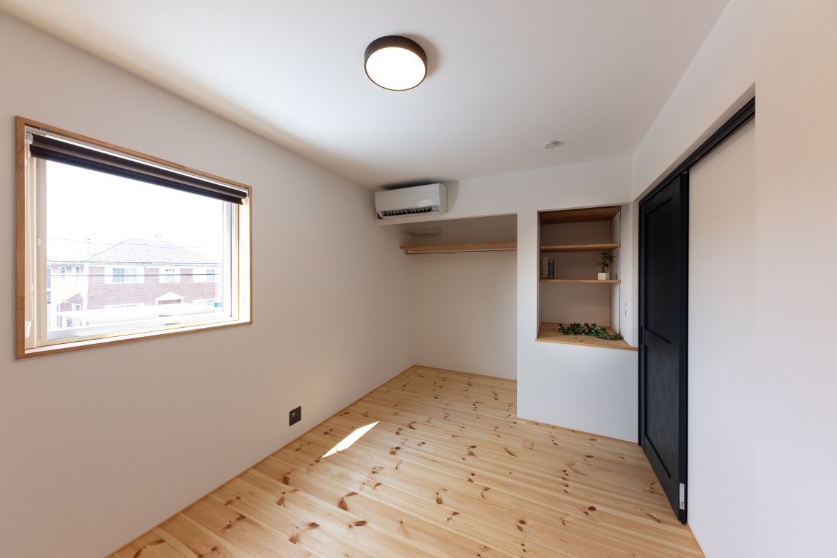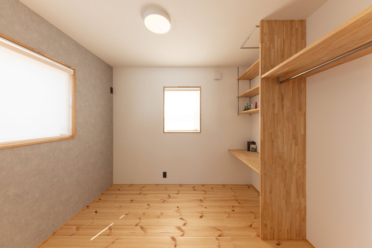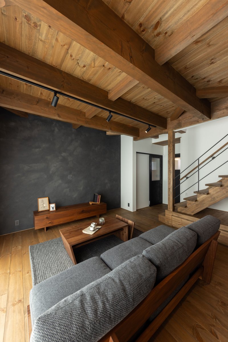 開放的な梁見せ天井や、素足でも快適に過ごせる無垢レッドパインフロア。自然素材が心地よいお家です。