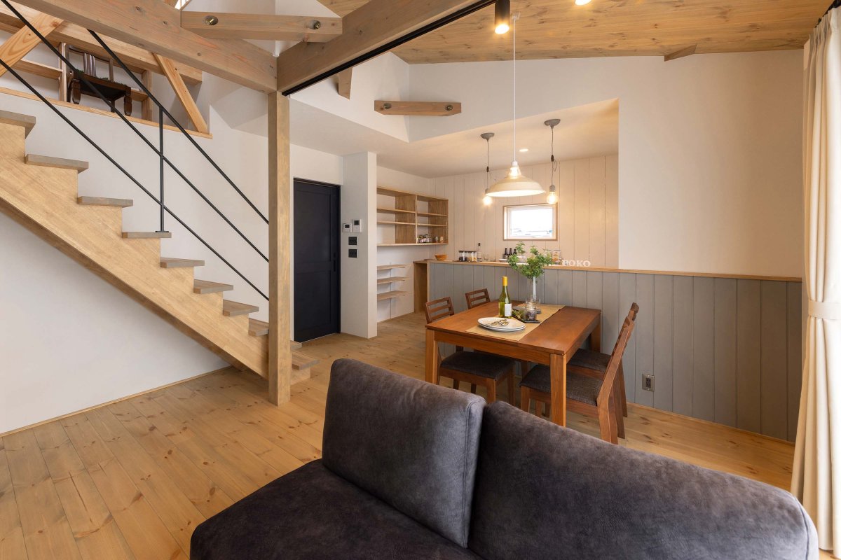 屋内は塗り壁と無垢材の自然素材を採用したナチュラルな風合いです。