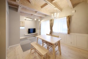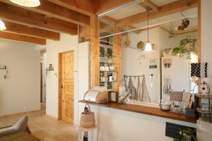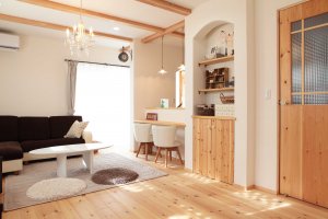 塗り壁やパインの無垢材を使った 自然素材のぬくもりあふれる