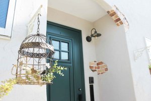 まあるいRの下がり壁やガラスの付いたかわいいドア