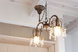 レトロなレンガ壁やおしゃれな照明・造作洗面台